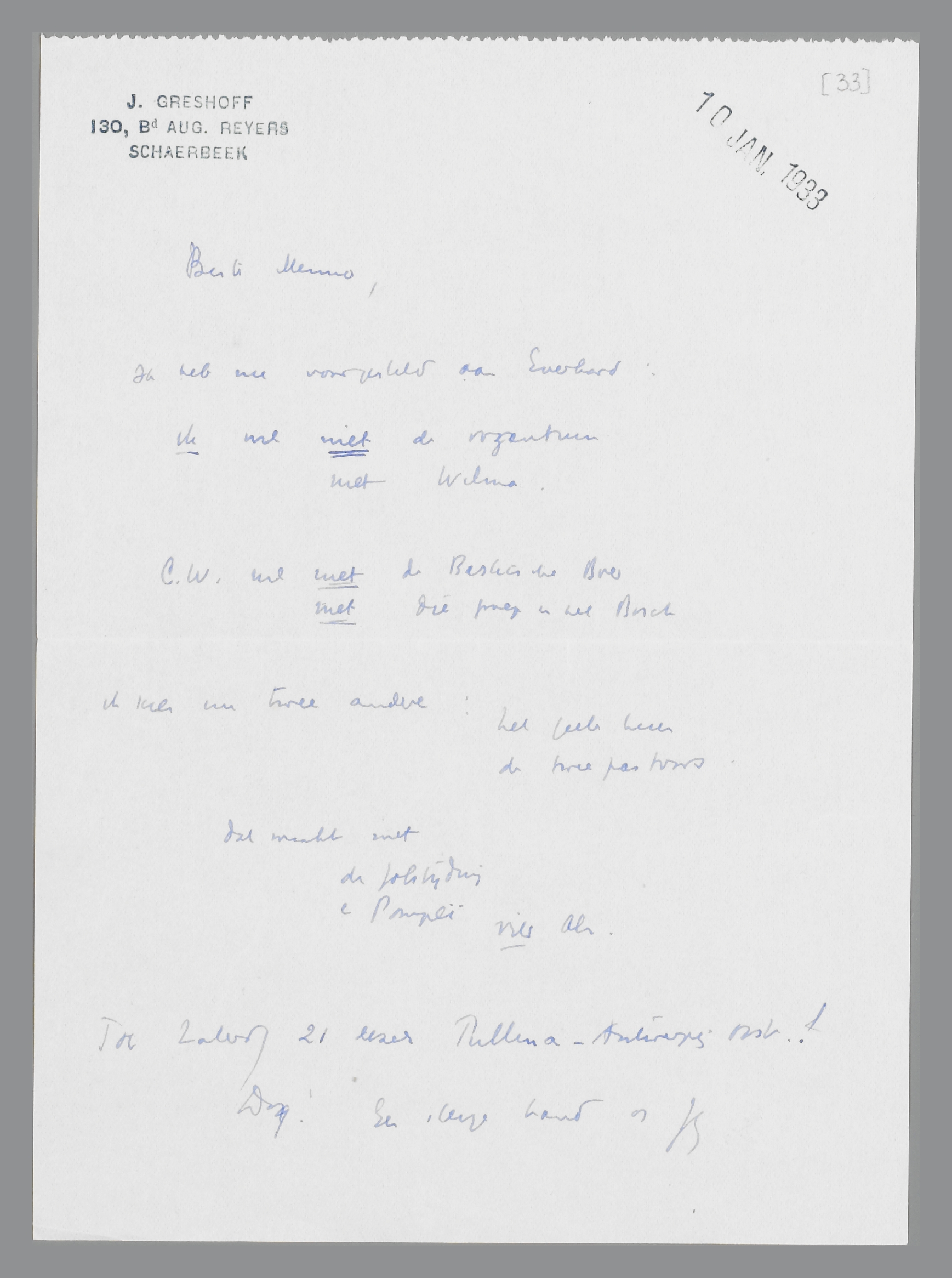 Schaerbeek, 10 januari 1933
