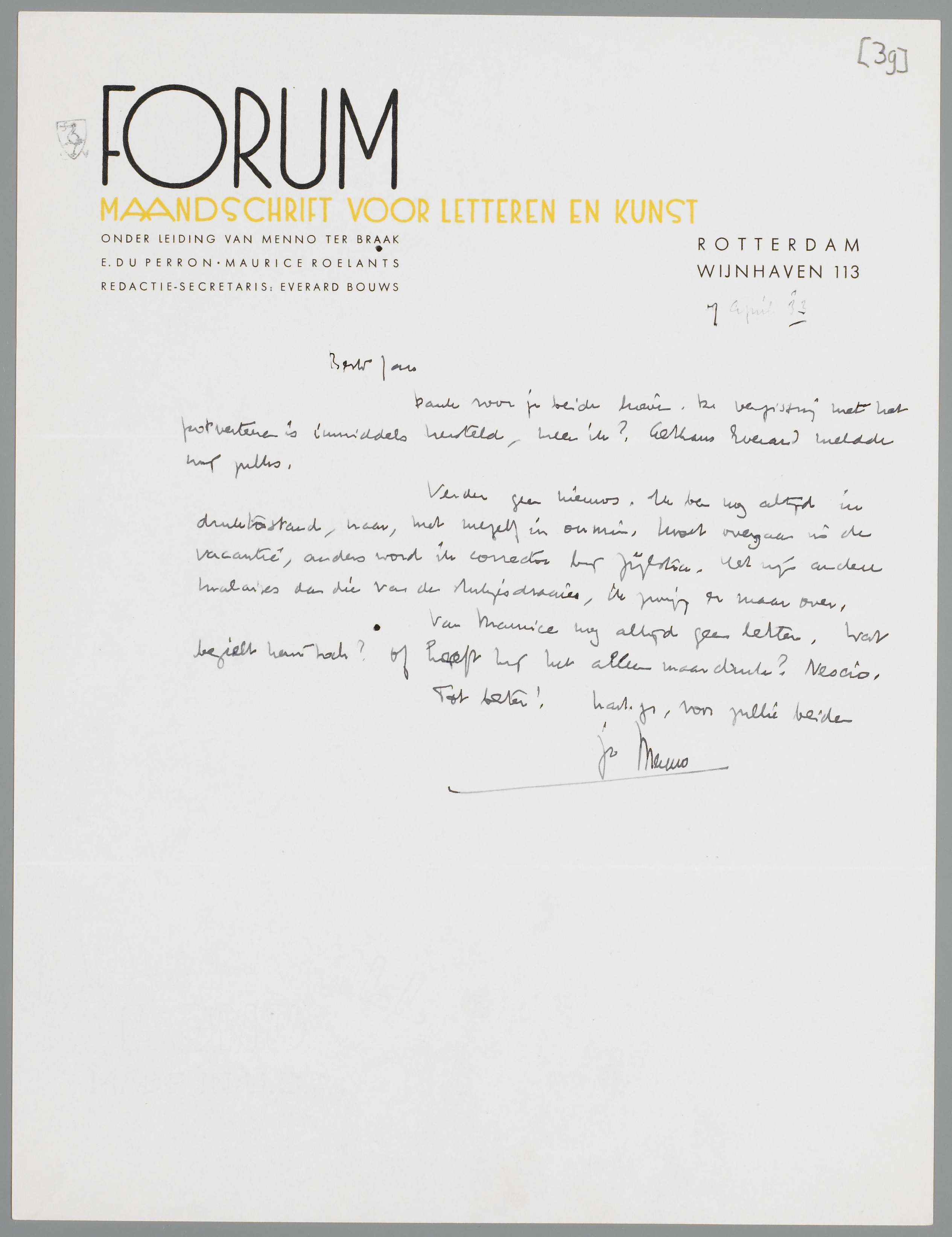 Dank voor je beide brieven. De vergissing met het potverteeren is inmiddels hersteld, meen ik? Althans Everard meldde mij zulks.