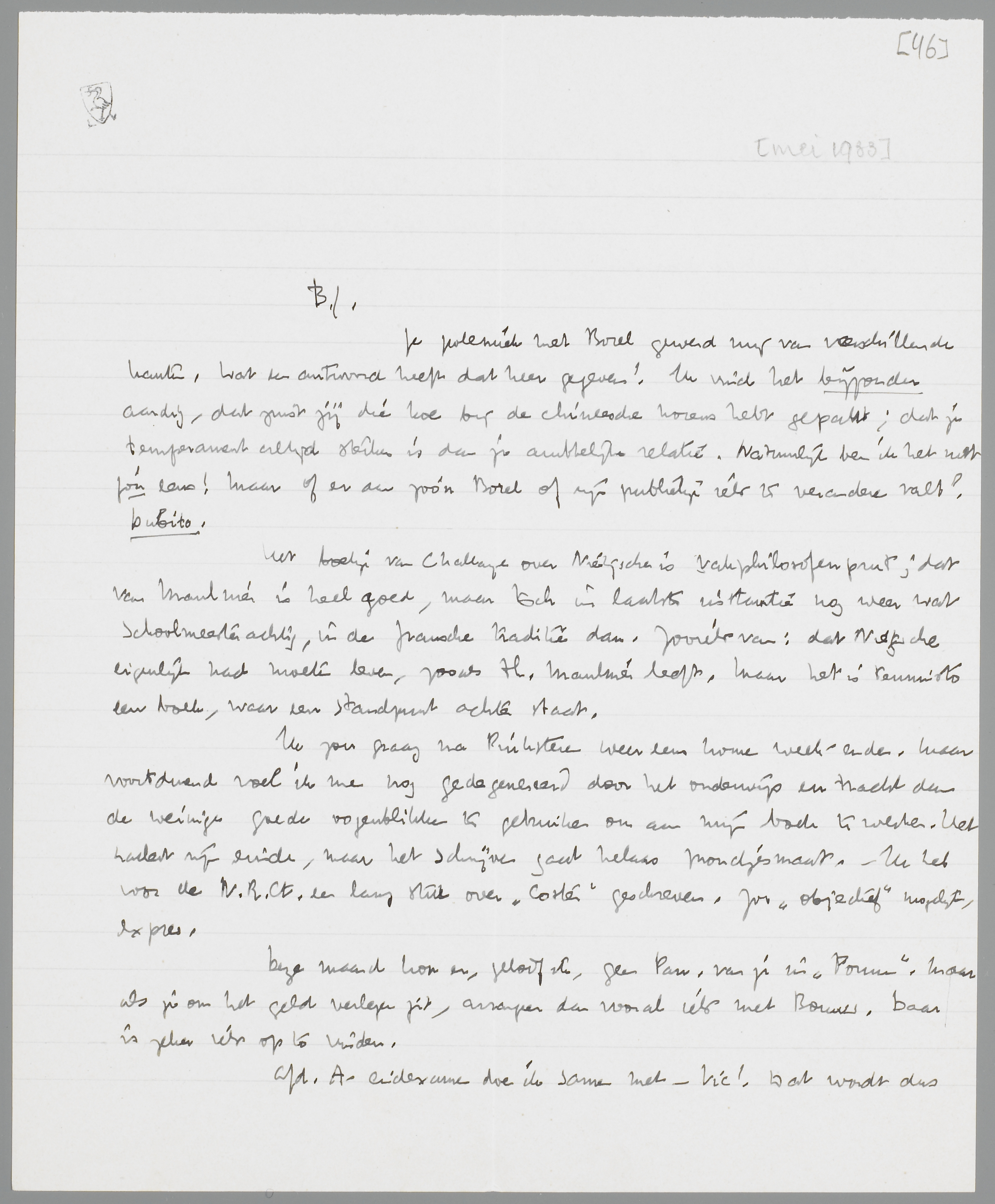 Je polemiek met Borel gewerd mij van verschillende kanten. Wat een antwoord heeft dat heer gegeven! Ik vind het bijzonder aardig, dat juist jij die koe bij de chineesche horens hebt gepakt; dat je temperament altijd sterker is dan je ambtelijke relatie. Natuurlijk ben ik het met jou eens! Maar of er aan zoo'n Borel of zijn publiekje iets te veranderen valt? Dubito.
