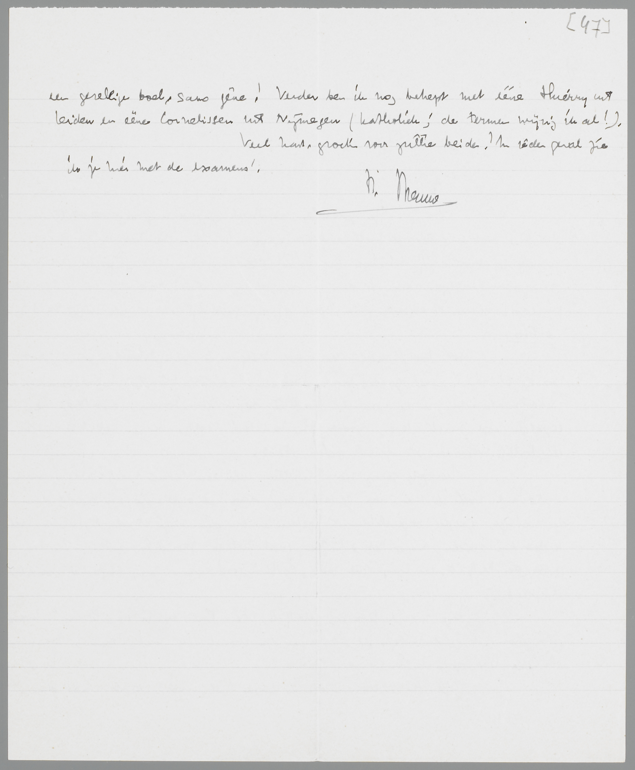 Ik zou graag na Pinksteren weer eens home week-enden. Maar voortdurend voel ik me nog gedegenereerd door het onderwijs en tracht dan de weinige goede oogenblikken te gebruiken om aan mijn boek te werken. Het nadert zijn einde, maar het schrijven gaat helaas mondjesmaat. - Ik heb voor de N.R.Ct. een lang stuk over ‘Coster’ geschreven. Zoo ‘objectief’ mogelijk, expres.