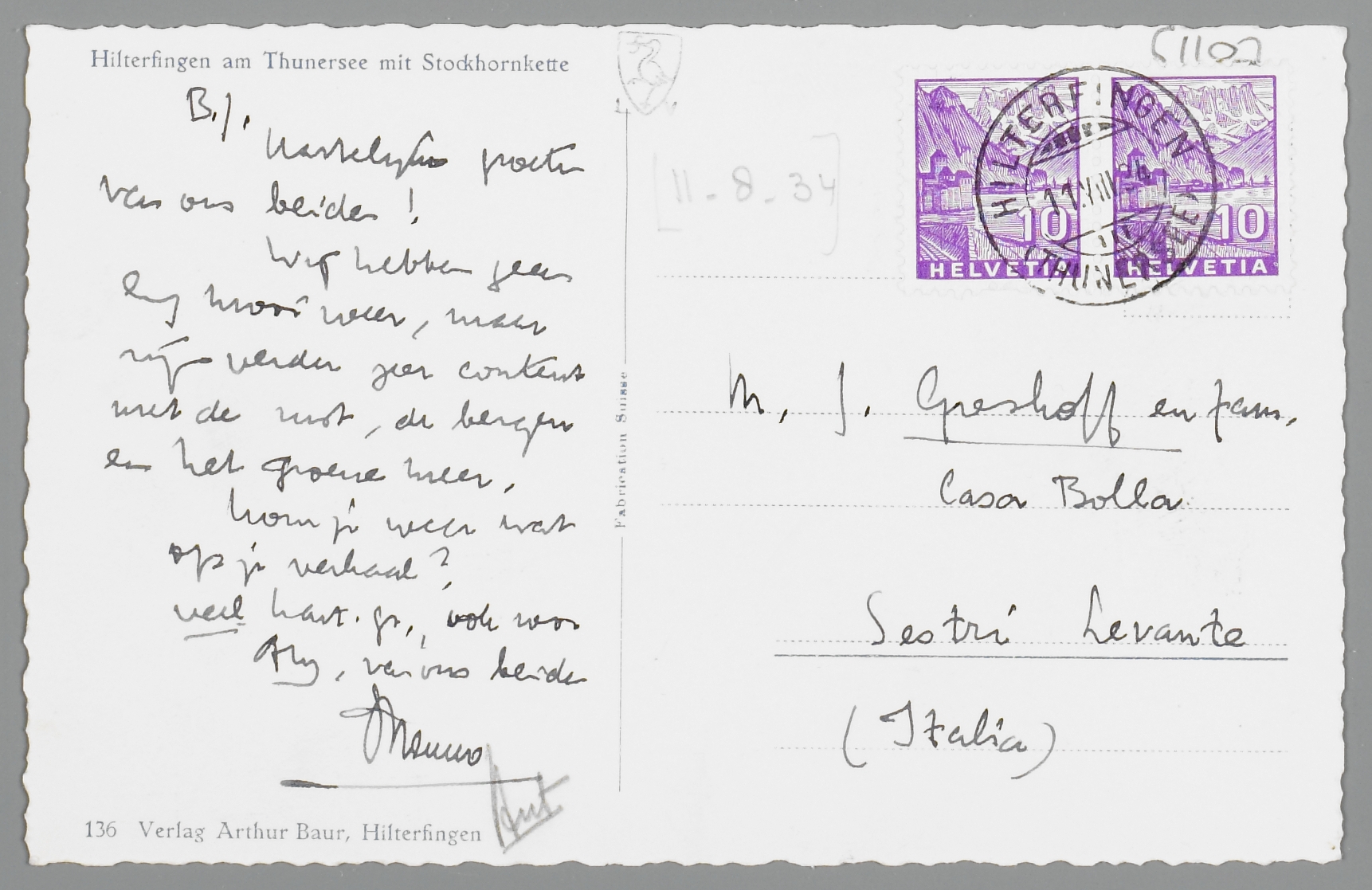Wij hebben geen erg mooi weer, maar zijn verder zeer content met de rust, de bergen en het groene meer.