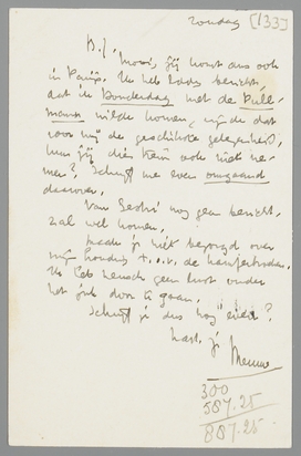 Mooi, jij komt dus ook in Parijs. Ik heb Eddy bericht, dat ik Donderdag met de Pullmann wilde komen, zijnde dat voor mij de geschiktste gelegenheid; kun jij dien trein ook niet nemen? Schrijf me even omgaand daarover.