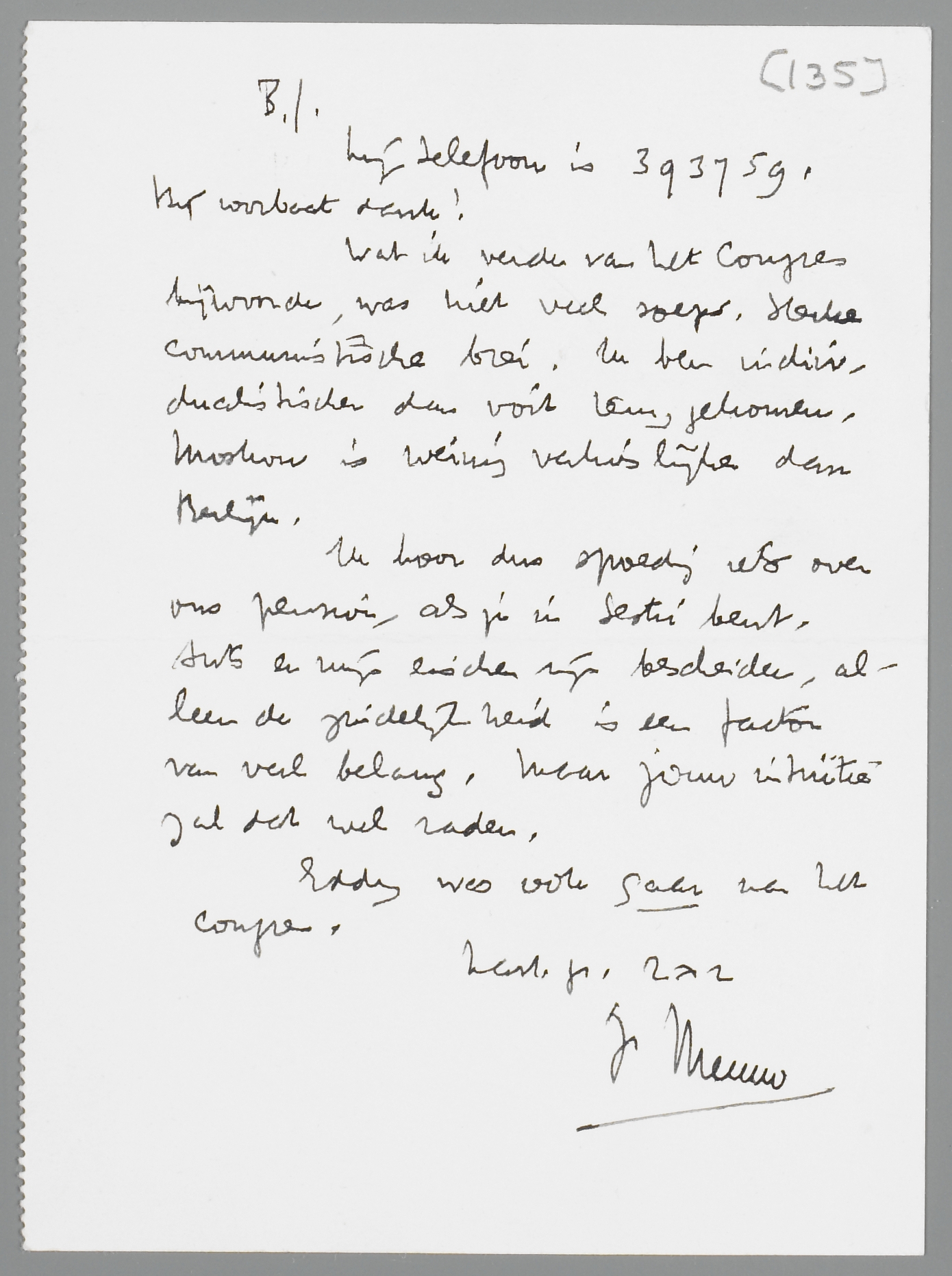 Wat ik verder van het Congres bijwoonde, was niet veel soeps. Sterke communistische brei. Ik ben individualistischer dan ooit teruggekomen. Moskou is weinig verkieslijker dan Berlijn.