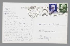 en in de toren heeft Arthur zijn werkkamer. Wij, vooral de jongens, genieten zeer van de reis. Ik benieuwd of ik Thelen nog zien zal. Ik schreef hem van te voren en bijtijds. Veel liefs van ga tot ga, een hart hand van Jan