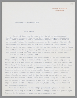 Hartelijk dank voor je lange brief. Es wär zu schön gewesen! Wij bekijken zulke dingen met het oog op de litteraire wenschelijkheid maar de Zijlstra's hebben lak aan litteratuur en kijken alleen maar naar hun portemonnaie. Vandaar dat eeuwig misverstand en de weerzin, welke wij telkens ondervinden wanneer wij met die handelslieden te maken hebben. Ik laat nu verder de zaak rusten tot jij je over dat ‘wonderplan’ van Zijlstra kunt uitlaten. Er is geen haast bij dit alles, maar er moet toch ook niet getraineerd worden, want het is gauwer dan we denken weer 1 Januari 1936!