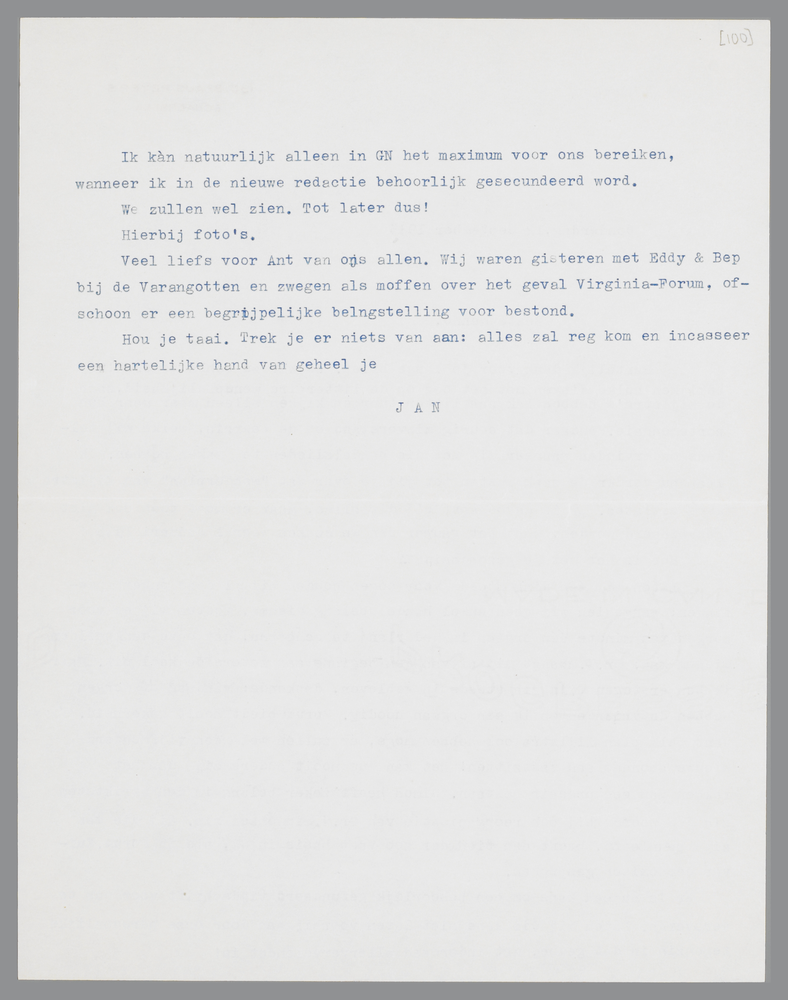 Veel liefs voor Ant van ons allen. Wij waren gisteren bij de Varangotten en zwegen als moffen over het geval Virginia-Forum, ofschoon er een begrijpelijke belangstelling voor bestond.