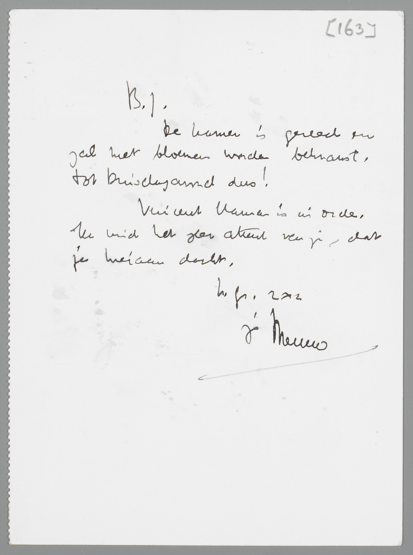 De kamer is gereed en zal met bloemen worden bekranst. Tot Dinsdagavond dus!