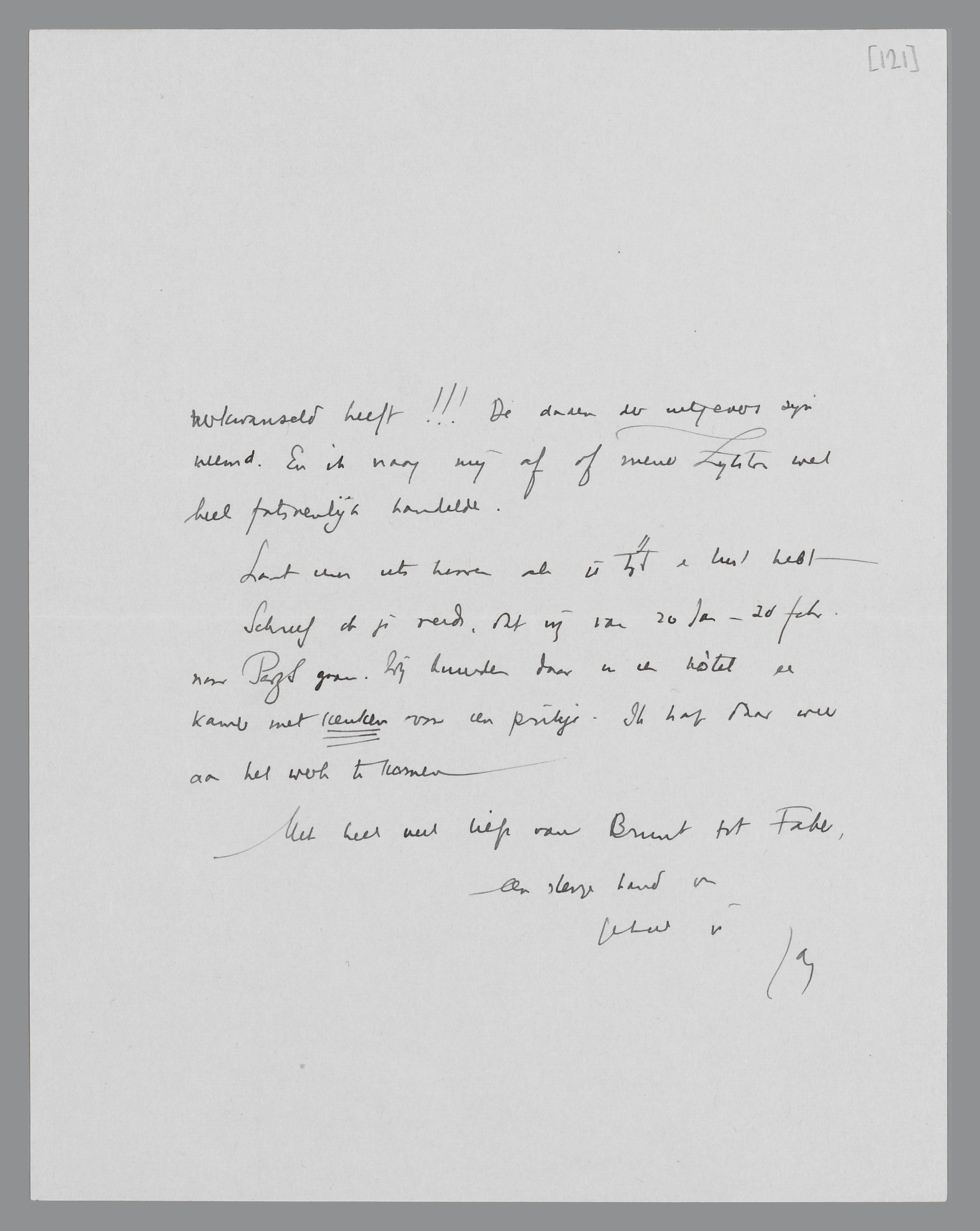 Laat even iets hooren als je tijd en lust hebt. Schreef ik je reeds dat wij van 20 Jan - 20 Feb naar Parijs gaan. Wij huurden daar in een hôtel een kamer met keuken voor een prikje. Ik hoop daar weer aan het werk te komen.