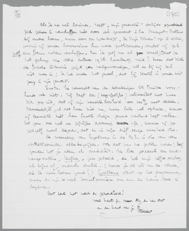 De redeneering van Engelman in de N.E. is die van den aesthetiseerenden allesbegrijper. Ook dat kan me gestolen worden; wij zonden het je alleen als curiositeit. Ik lees goddank een eersterangs auteur, Kafka, zeer geboeid, en heb mijn vijfde dialoog al bijna af, ondanks drukte. (Hoorde je al iets van de vierde, die ik naar Coenen zond?) Guilloux staat op het programma, maar er zijn te veel tooneelpremières om aan een nieuw boek te beginnen.