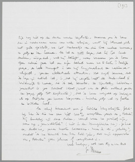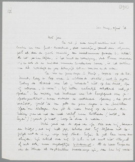 Ik was een paar dagen in Parijs, logeerde op de Bd. Murat. Eddy en Bep waren in uitstekende conditie, moet ik zeggen. Zoolang de obsessie van het ‘komende’ niet op hen drukt, zijn zij volkomen ‘in vorm’. Wij hebben natuurlijk ontzettend veel ‘gesproken’. Een middag met Malraux was het hoogtepunt van gespreksquantiteit. Maar ondanks de voortdurende spanning, die zooiets vereischt, geniet ik van zulk een paar dagen in een ‘kristallen sfeer’ van dialogen. Nu zit ik weer braaf op de krant. A.s. Zaterdag gaan we met een week verlof naar Bilthoven (hotel ‘De Leyen’); zooals je weet, hoop ik daar te werken.