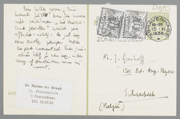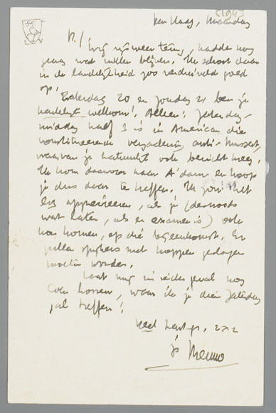 Zaterdag 20 en Zondag 21 ben je hartelijk welkom! Alleen: Zaterdagmiddag half 3 is in American die constitueerende vergadering anti-Mussert, waarvan je natuurlijk ook bericht kreeg. Ik kom daarvoor naar A'dam en hoop je dus daar te treffen. Ik zou het erg apprecieeren, als je (desnoods wat later, als er examen is) ook kon komen, op die bijeenkomst. Er zullen spijkers met koppen geslagen moeten worden.