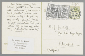 Een titel voor ‘Ein Mensch fällt’ kan ik maar niet verzinnen. ‘Uit Duitschland gevallen’ klinkt zoo affiche-achtig. Ik zal nog eens ernstig peinzen. Merz logeert momenteel hier; misschien tref je hem nog, in Den Haag of Amsterdam, waar hij woont.