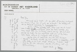 Ik kan helaas Zaterdag niet, want moet voor de krant naar ballet Menska, potdorie. Groet de heeren hartelijk, en vraag vooral Cola om verschooning, dat ik hem nog geen antwoord gaf op zijn brief. Ik kan momenteel niet weg uit Den Haag, maar hoop volgende of navolgende week te komen.