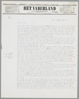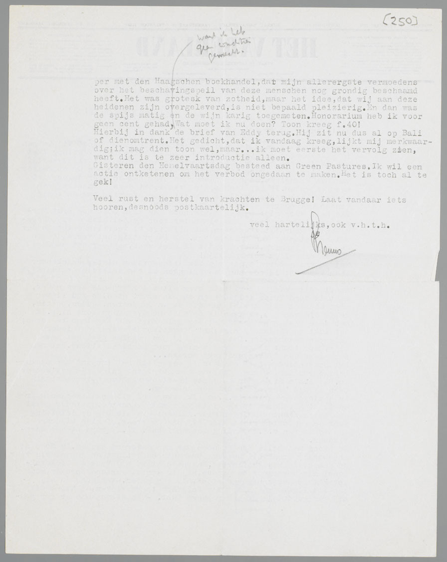 Hierbij in dank de brief van Eddy terug. Hij zit nu dus al op Bali of dienomtrent. Het gedicht, dat ik vandaag kreeg, lijkt mij merkwaardig; ik mag dien toon wel, maar... ik moet eerst het vervolg zien, want dit is te zeer introductie alleen.