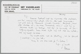 Maurice Roelants heeft een ingezonden stuk gepleegd, dat hij, naar hij erbij schrijft, ook aan jou heeft toegezonden. Het gaat over de Vlaamsche genieën-quaestie. Aangezien jouw stuk verscheen als ‘van onzen Brusselsche corr.’, gaat hij zooverre buiten zijn boekje, dat hij je eenvoudig als Greshoff aanspreekt. Maar verder lijkt mij dit stuk een repliek, die wij moeten opnemen.