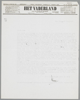 Over den verloren brief heb ik direct geklaagd. Ik weet nu nog precies het uur van posten en de bus, zoodat het geval ook precies onderzocht kan worden. Het waarschijnlijkst lijkt mij, dat die Indische vloeipapiertjes den indruk maken van zeker mammonistisch vuil! De hypothese Mussert lijkt me in ieder geval te verwerpen, nu meer dan ooit.