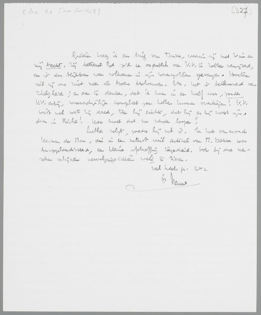 Luther volgt, zoodra hij uit is. Ik heb vanavond Herman de Man, die in een uiterst vuil artikel van M. Dekker was beapplaudiseerd, een kleine afstraffing toegediend. Ook bij deze menschen schijnen vervolgingsideeën welig te tieren.