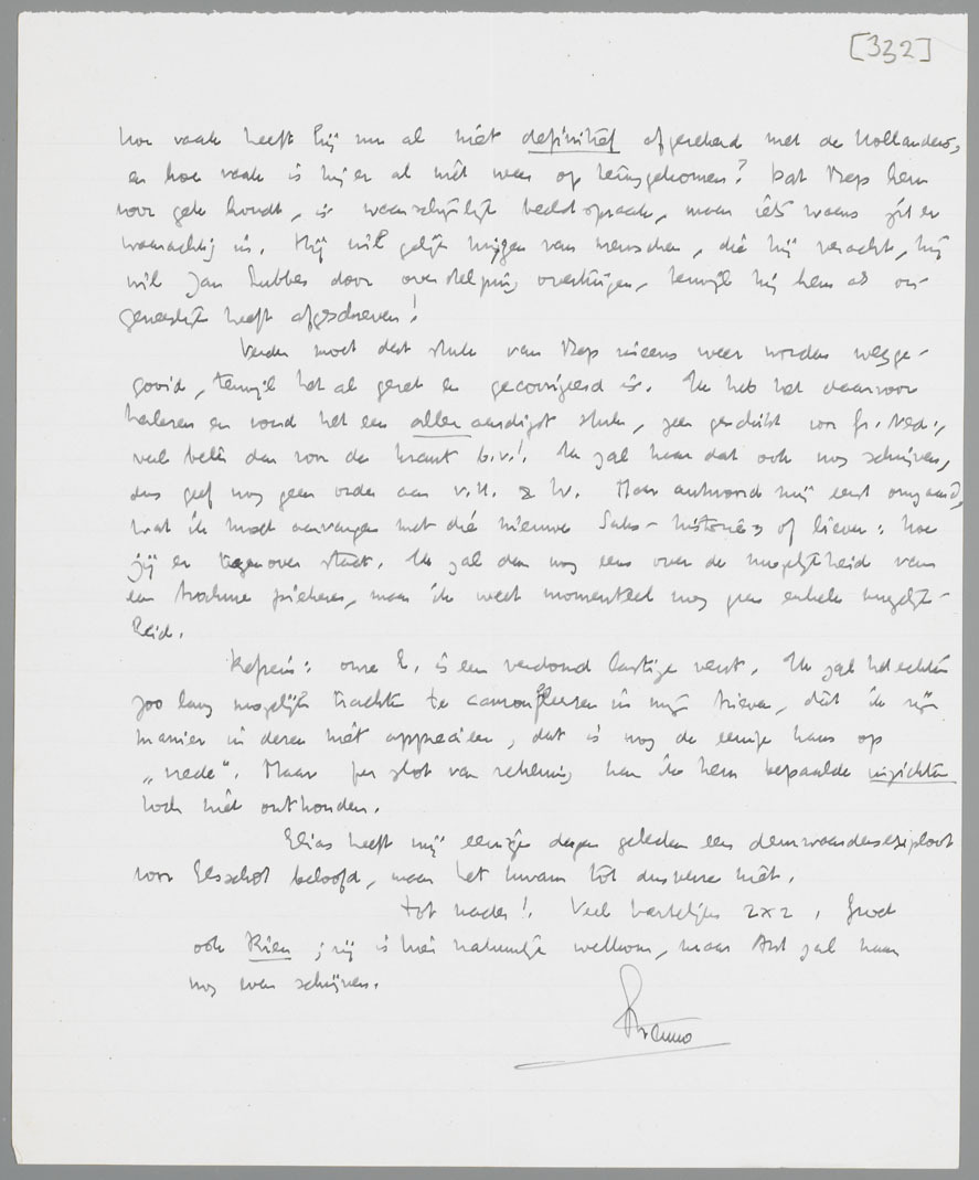 Verder moet dat stuk van Bep ineens weer worden weggegooid, terwijl het al gezet en gecorrigeerd is. Ik heb het daarvoor herlezen en vond het een alleraardigst stuk, zeer geschikt voor Gr. Ned., veel beter dan voor de krant b.v.! Ik zal haar dat ook nog schrijven, dus geef nog geen order aan v.H. & W. Maar antwoord mij eerst omgaand, wat ik moet aanvangen met die nieuwe Saks-historie, of liever: hoe jij er tegenover staat. Ik zal dan nog eens over de mogelijkheid van een brochure piekeren, maar ik weet momenteel nog geen enkele mogelijkheid.
