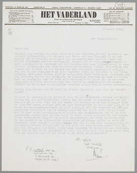 Hierbij een verslag van mijn onderhoud met Zijlstra, dat mij geenszins ongunstig lijkt. Alleen zit de zaak met Stols hem zoo hoog, dat ik er met moeite een verstandig woord over kon zeggen. Volgens Z. heeft Stols hem willen oplichten met die verkoop. Hij toonde mij de correspondentie; en ik moet zeggen, dat de bedragen ook mij fabelachtig hoog lijken! Z. ontkent, dat de voorwaarden van v. Dishoeck een zelfde geval waren!