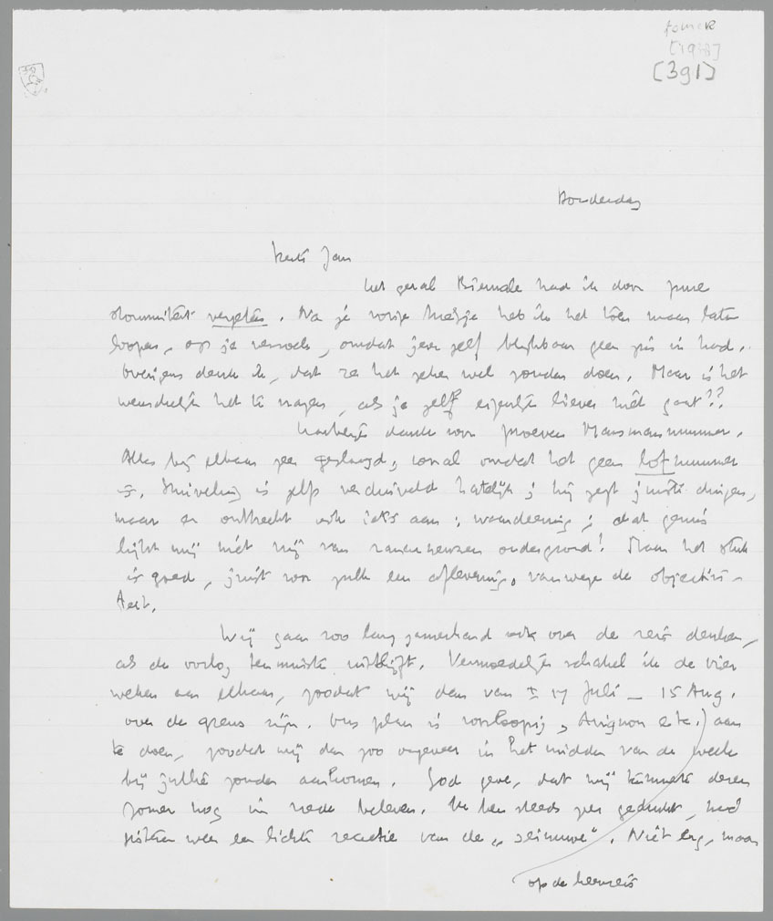 Het geval Biennale had ik door pure stommiteit vergeten. Na je vorige briefje heb ik het toen maar laten loopen, op je verzoek, omdat je er zelf blijkbaar geen zin in had. Overigens denk ik, dat ze het zeker wel zouden doen. Maar is het wenschelijk het te vragen, als je zelf eigenlijk liever niet gaat??