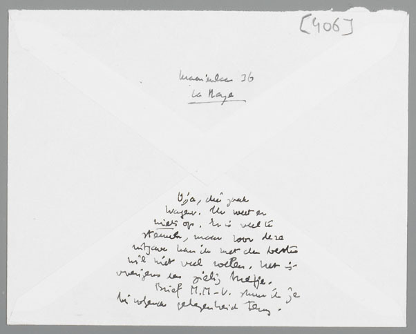 O ja, die zaak Wagenv. Ik weet er niets op. Er is veel te steunen, maar voor deze uitgave kan ik met den besten wil niet veel voelen. Het is overigens een zielig briefje. Brief M.M-V. stuur ik je bij volgende gelegenheid terug.