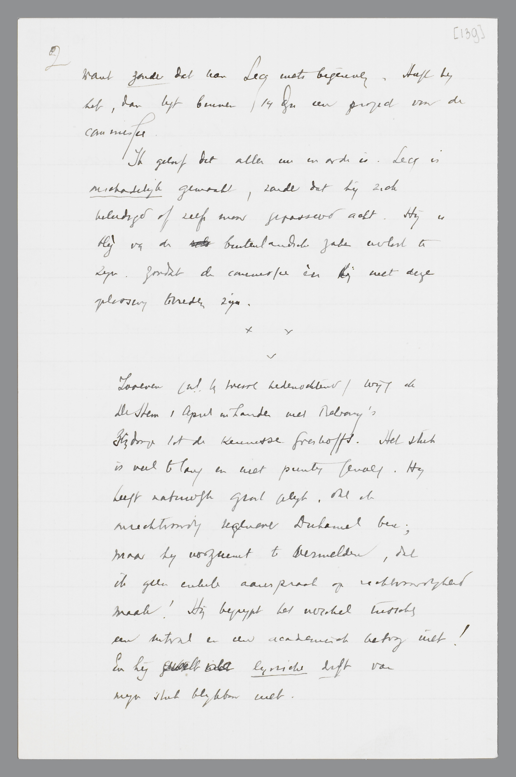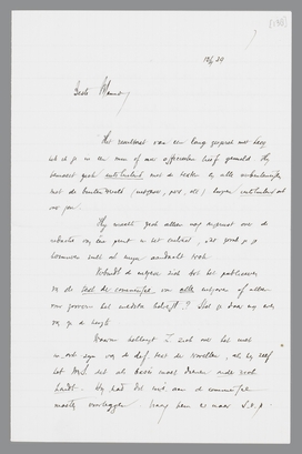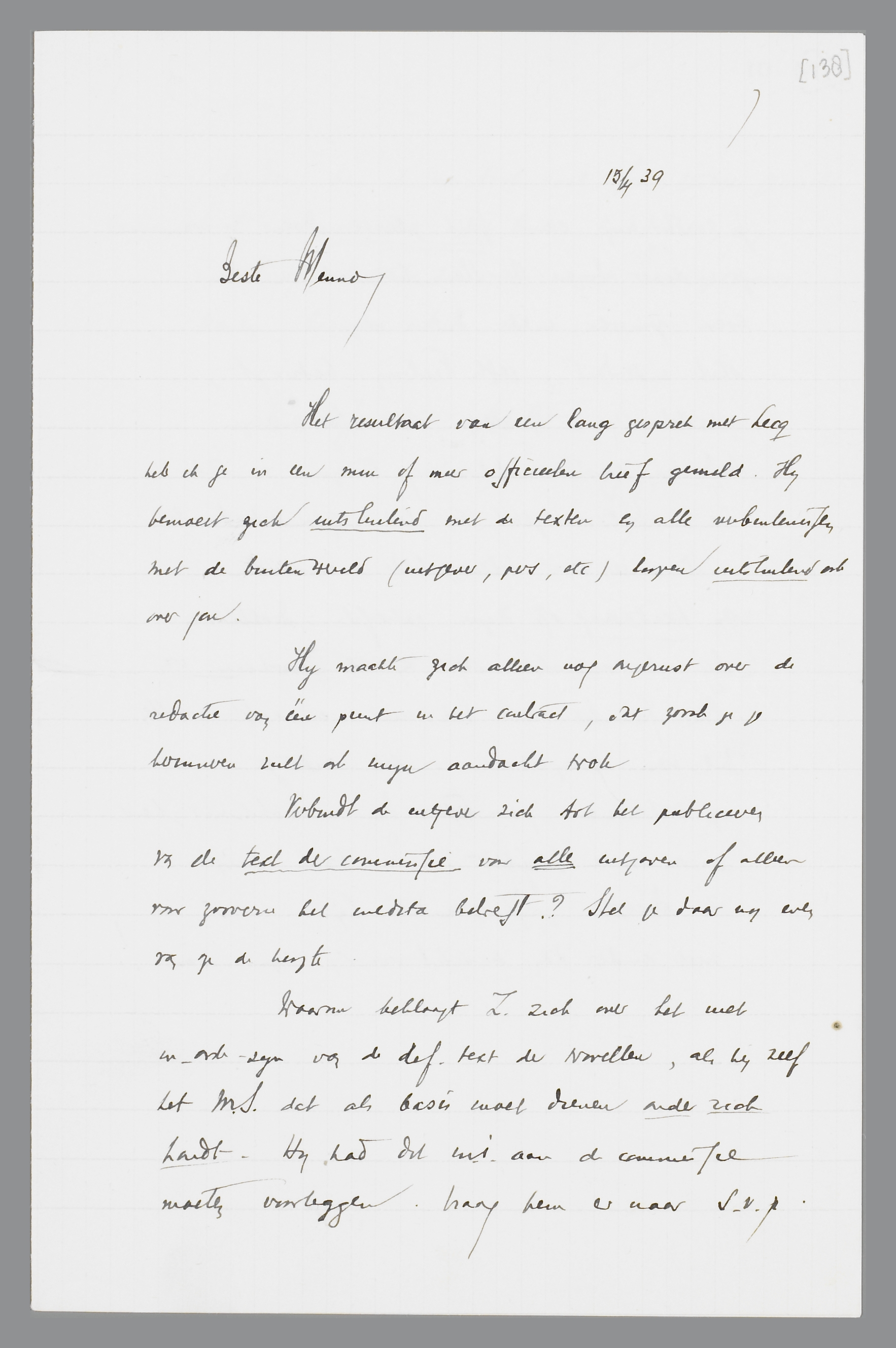 Waarom beklaagt Z. zich over het niet in-orde-zijn van de def. text der Novellen, als hij zelf het m.s. dat als basis moet dienen onder zich houdt. Hij had dit m.s. aan de commissie moeten voorleggen. Vraag hem er naar s.v.p. want zonder dat kan Lecq niets beginnen. Heeft hij het, dan ligt binnen 14 dagen een project voor de commissie.