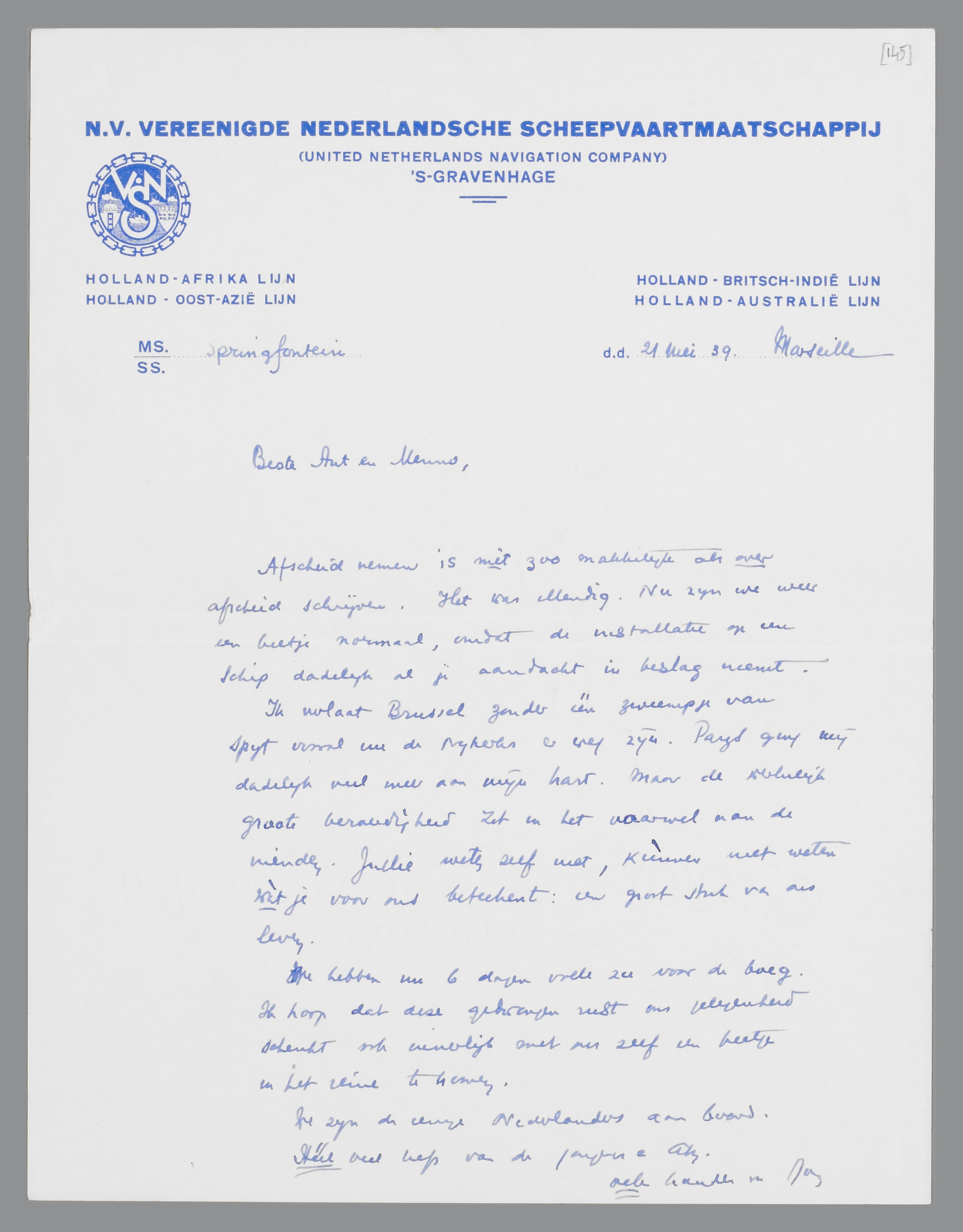 MS. Springfontein d.d. 21 Mei 39. Marseille
