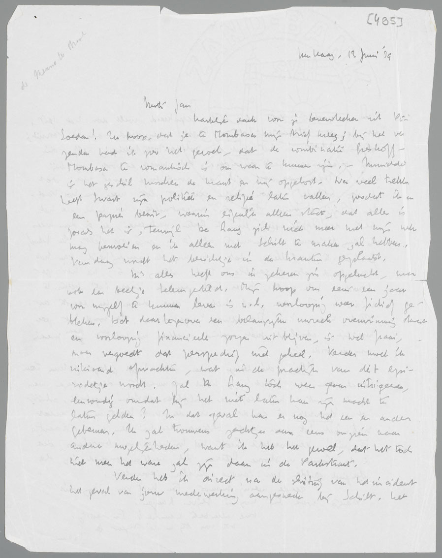 Hartelijk dank voor je levensteeken uit Port-Soedan! Ik hoop, dat je te Mombasa mijn brief kreeg; bij het verzenden had ik zoo het gevoel, dat de combinatie Greshoff - Mombasa te romantisch is om waar te kunnen zijn.
