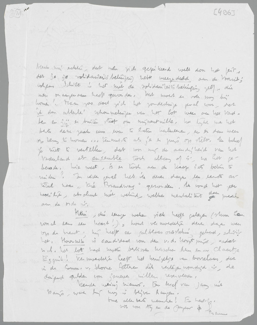 Verder weinig nieuws. Een brief van Jany uit Parijs, waar hij nog is blijven hangen.