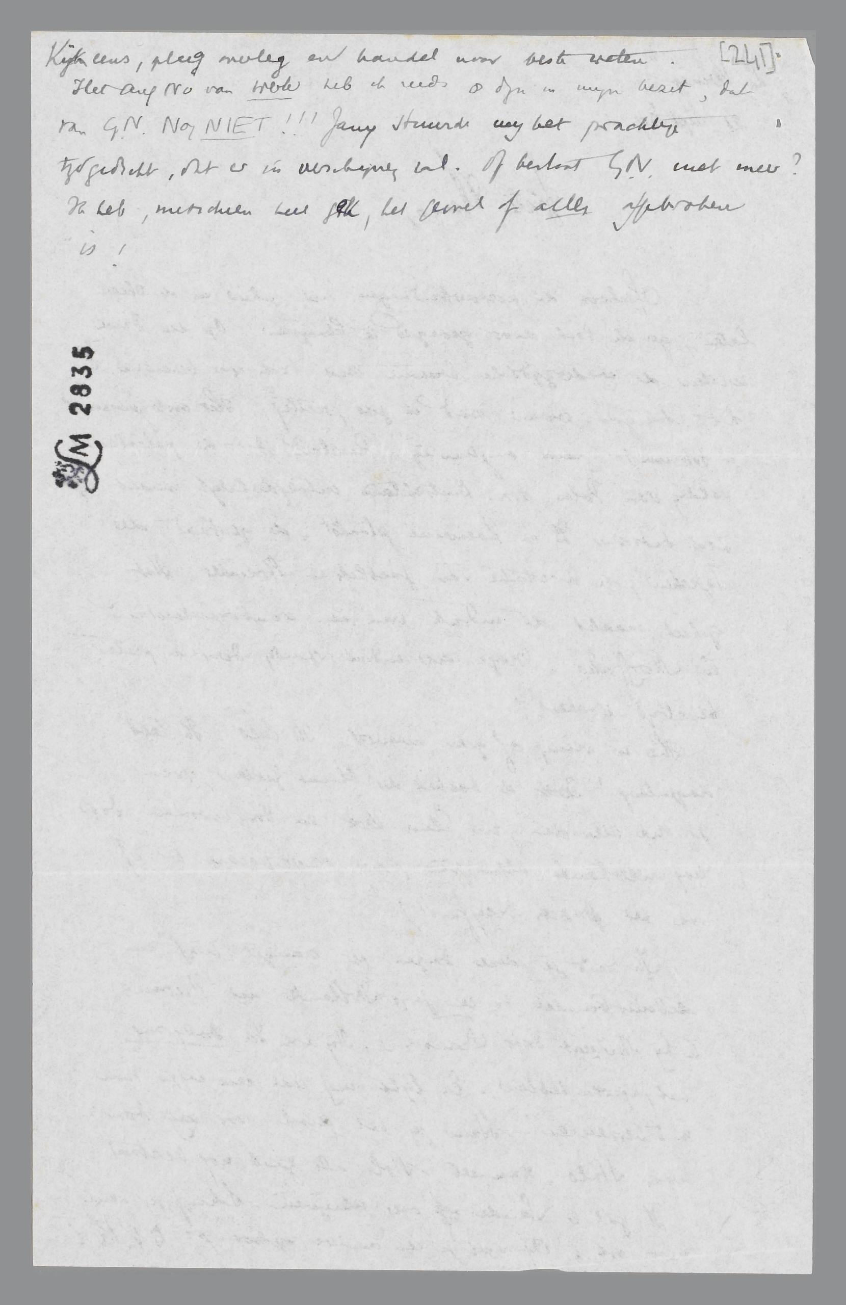 Het Aug. No van Werk heb ik reeds 8 dgn in mijn bezit, dat van G.N. nog NIET!!! Jany stuurde nog het prachtige tijdgedicht, dat er in verschijnen zal. Of bestaat G.N. niet meer? Ik heb, misschien heel gek, het gevoel of alles afgebroken is!