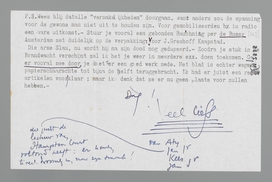 Dit is alles over mezelf!!!! Schrijf jij ook nu veel over jezelf voor het evenwicht, anders lijk ik zoo erg narcisserig! Ga mijn laatste brieven eens na. Ik heb het gevoel of er nog op duizend vragen een antwoord moet komen. Zou je ze alle gekregen hebben? Ik heb muurvast iedere week één of tweemaal geschreven en nooit overgeslagen. Gord je aan en schrijf met mijn oude epistels naast je een uitvoerig bericht!!!!! Correspondentie is onze éénige echte en ware vreugde, vergeet dat niet.