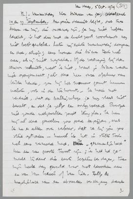 Van Wijk Louw ontvangen, met veel pleizier gelezen, en er onmiddellijk een Zondagsartikel over geschreven, dat dus 8 October verschijnt, met het portret van Jan jr. van hem. Daarin zul je mijn opinie dus vinden, maar ik wil vast per brief zeggen, dat ik het boekje voor alles sympathiek vond: moeizaam, werkend met inadequate begrippen dikwijls, maar toch: ‘een der onzen’. Ik heb juist dat zoo duidelijk mogelijk laten uitkomen, om de aandacht op hem te vestigen.