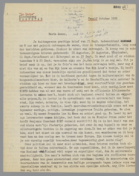 Over politiek zal ik maar niet uitweiden, deze brieven worden toch altijd door de feiten achterhaald. Er zijn oogenblikken, dat ik de smeerlapperij van Rusland versus Finland véél erger en ergerlijker vind, dan de universeele nazivuiligheid. Die nazi's hebben zich van den beginne als roofdieren voorgedaan, daar kon geen misverstand over ontstaan; terwijl de moscovieten als voorvechters van de democratie een heftige propaganda tegen iedere vorm van imperialisme maakten! Mij is ten slotte een openlijke schurk nog ièts liever dan een huichelende.