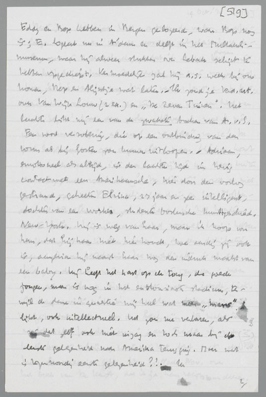 Eddy en Bep hebben in Bergen gelogeerd, waar Bep nog is; E. logeert nu in A'dam en Delft in het Multatuli-museum, waar hij alweer stukken over Lebak schijnt te hebben opgediept. Vermoedelijk zal hij a.s. week bij ons komen, Bep en Alijntje wat later.