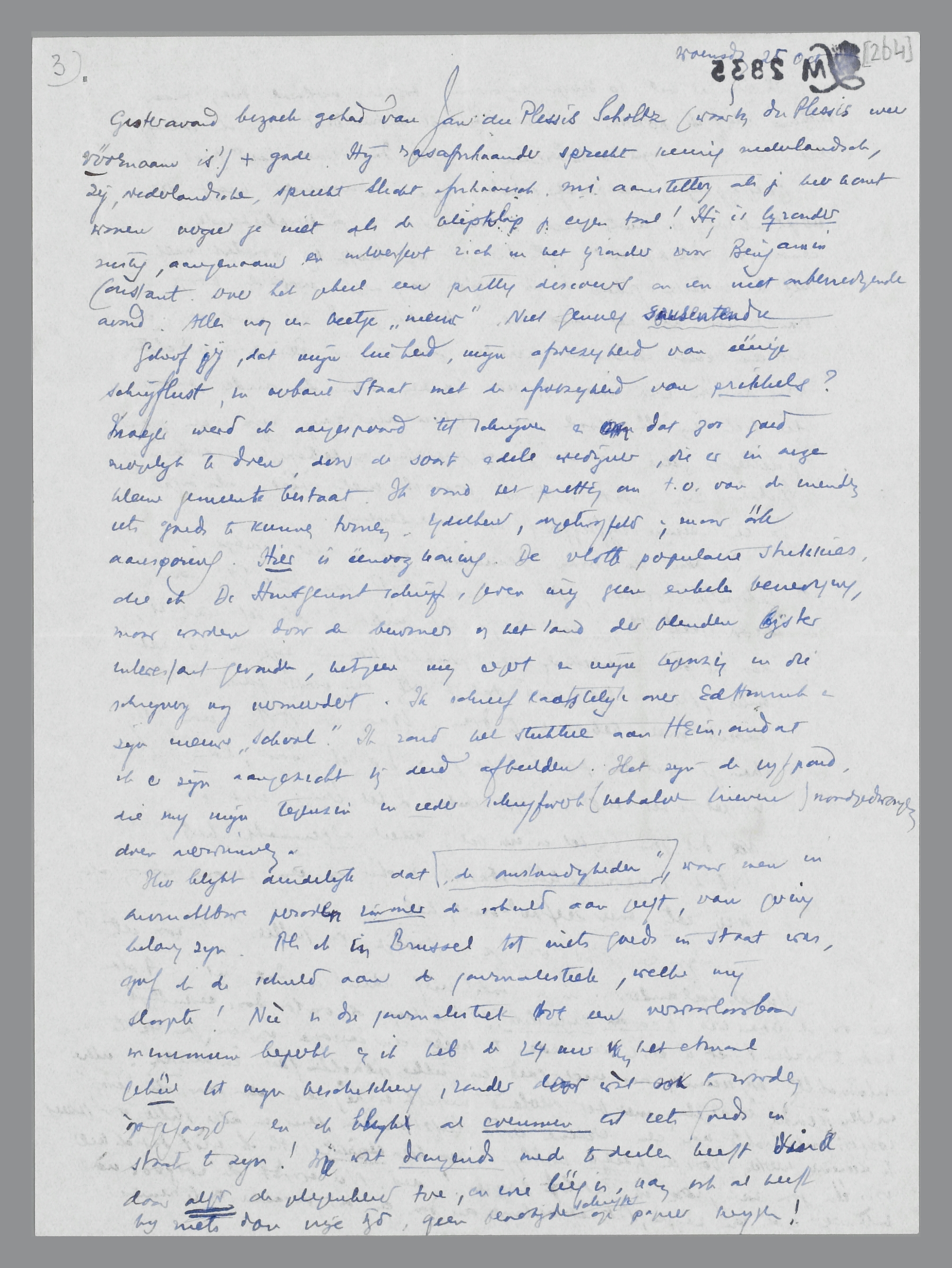 De Duitschers doen me denken aan die Marseillaan, die in een ruzie te Parijs wanhopig om zich rond keek en uitriep: ‘is er hier dan níémand om me vást te houden?’ Nadat hij gezegd had: hou me vast of ik bega een ongeluk! Wat een deplorabel zoodje zijn die misdadigers[?] nog bovendien: laf en dom.