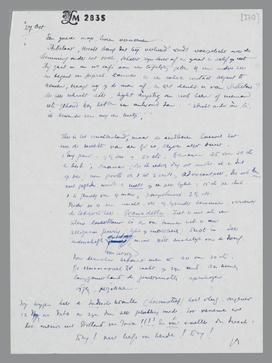 Al die praatjes loopen uit op één ding. Als de overbekende en helaas zoo zelden optredende fee mij vroeg: wát is je ééne wensch, zou ik antwoorden: een huisje in Antibes of zelfs een bovenhuisje in de Schuytstr. of de [onleesbaar]! Met een klein baantje op Het Vaderland!