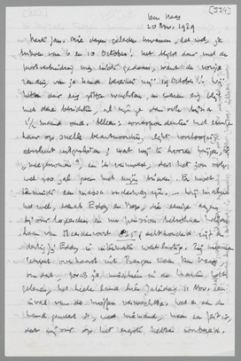 Je brief van 10 Oct. bevatte een boodschap voor Louw, maar aangezien deze 9 Nov. scheep heeft moeten gaan, kwam de boodschap een week te laat. Toch heb ik hem (omdat ook hij vertraging kan hebben gehad) nog een briefkaart geschreven; tot dusverre geen antwoord, dus ik vrees, dat hij toch al naar Afrika is vertrokken. Wat moet ik nu doen met de ƒ5, die ik inmiddels ook van je ontving? Ik vrees, dat verzending van een pakje momenteel op onoverkomelijke bezwaren zal stuiten. Ik wacht in ieder geval nog even, of Louw nog asem geeft.