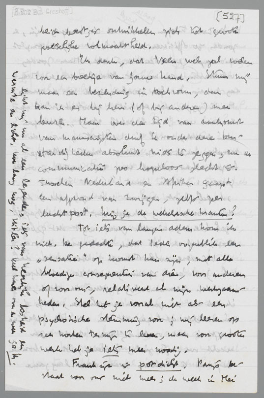 Tot iets van langen adem kom ik niet. De gedachte, dat ieder oogenblik een ‘sensatie’ op komst kan zijn, met alle bloedige consequenties van dien, voor anderen of voor ons, relativeert al mijn werkzaamheden. Stel het je vooral niet als een psychologische stemming voor; wij leeren op zeer korte termijn te leven, maar voor grooter werk heb je iets meer noodig.
