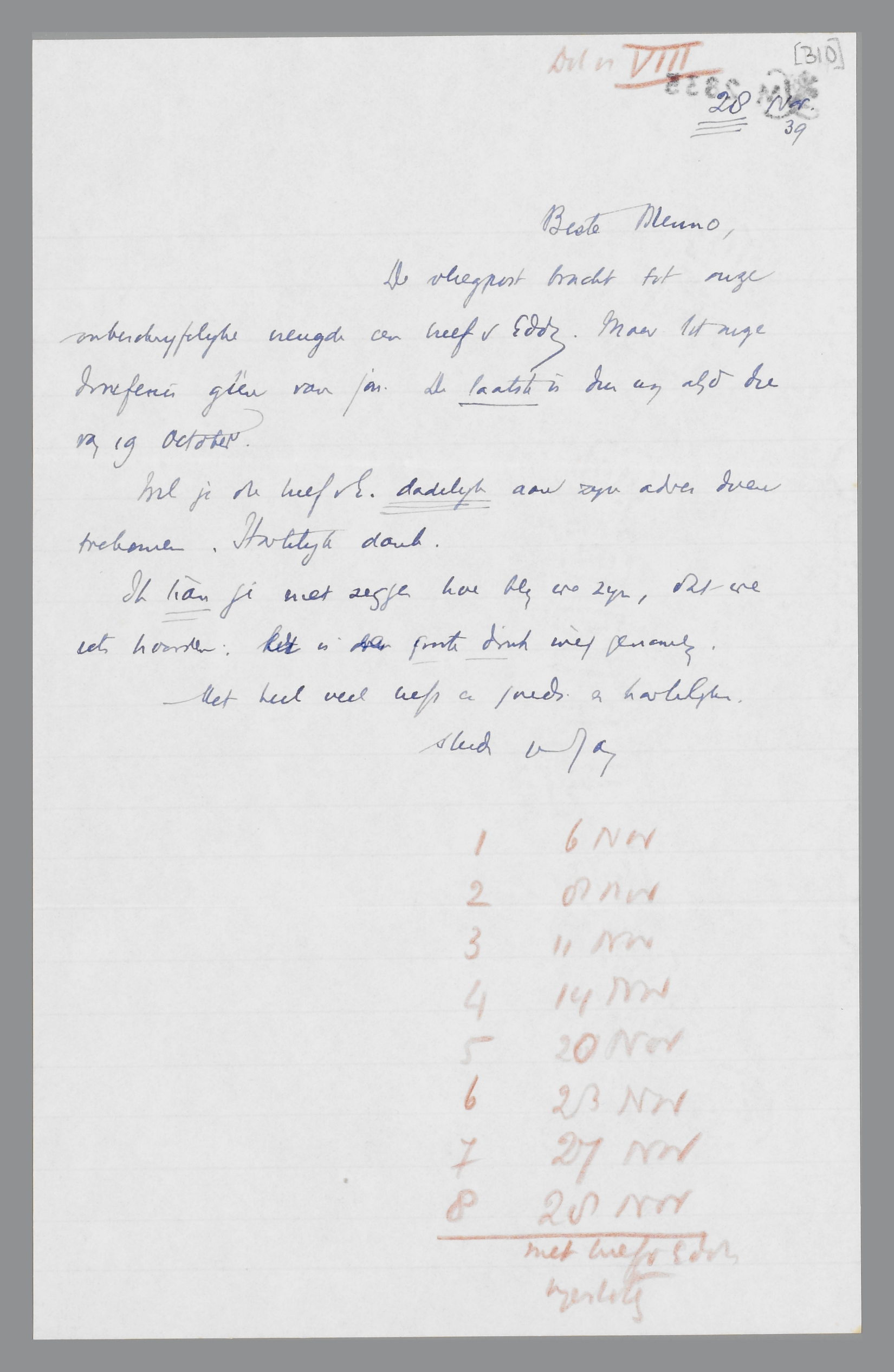 | 8 | 28 Nov met brief van Eddy ingesloten |