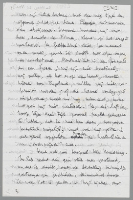 De heer Louw bleek inderdaad al weg te zijn, want ik kreeg mijn briefkaart onbestelbaar terug. Ik zal nu probeeren andere Afrikaanders voor die theeparapluies op te duikelen, maar of het lukt, weet ik niet. Alles, wat met de scheepvaart samenhangt, is, sedert die vervloekte magnetische of andere mijnenpest volkomen onzeker geworden. Het ‘navigare necesse est, vivere non necesse’ is een naar, maar helaas ook waar woord in zulke tijden. Welzalig zij, die in feite moeten navigeeren en ieder moment zoo'n duitsche ontploffing hebben te riskeeren. Ik neem daarvoor mijn hoed af en voel mij een schijterig intellectueeltje vergeleken bij zulke menschen. Maar misschien voelen zij dat risico heel anders, en minder persoonlijk aan.