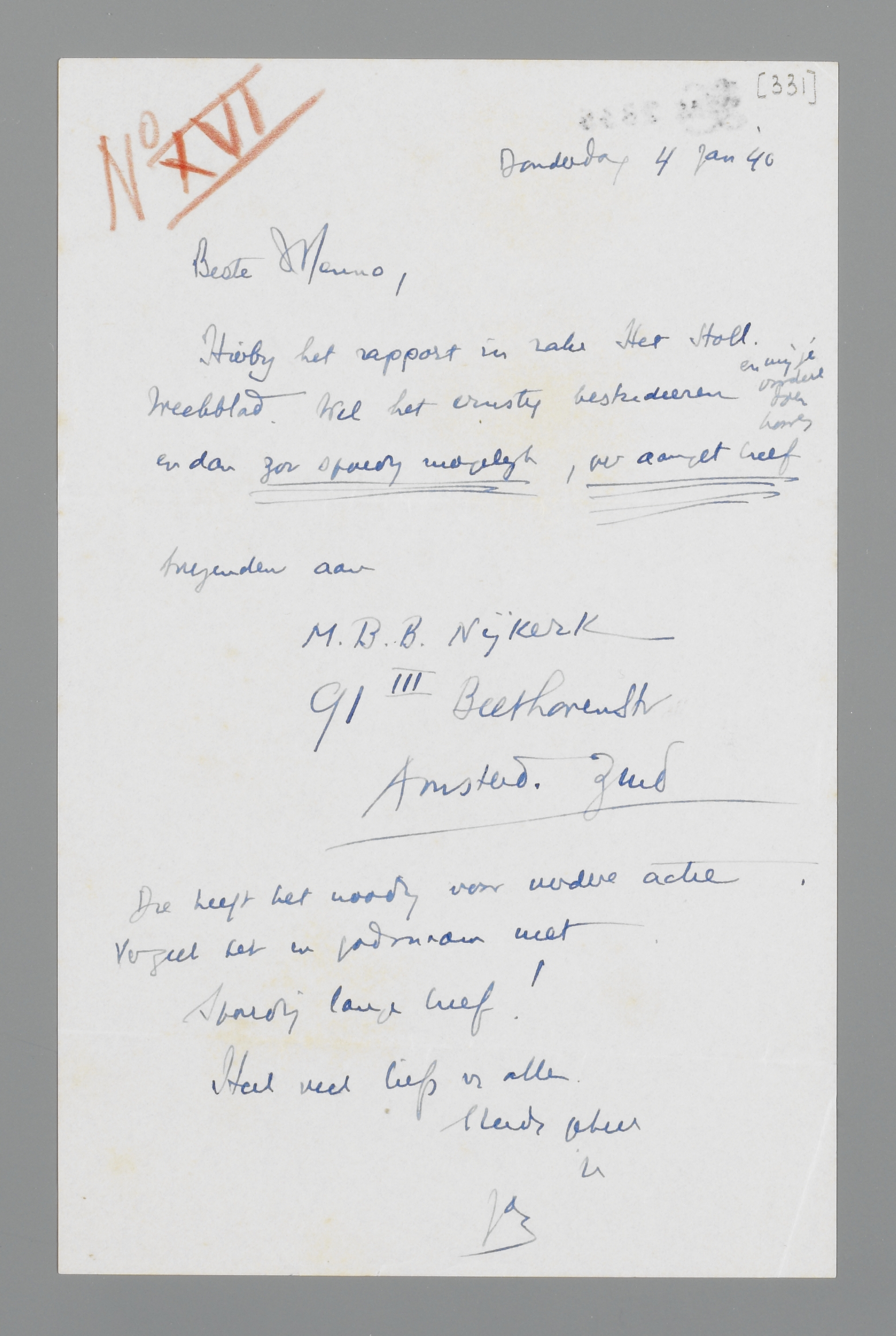 Hierbij het rapport in zake Het Holl. Weekblad. Wil het ernstig bestudeeren en mij je oordeel doen komen en dan zoo spoedig mogelijk, in aanget brief toezenden aan