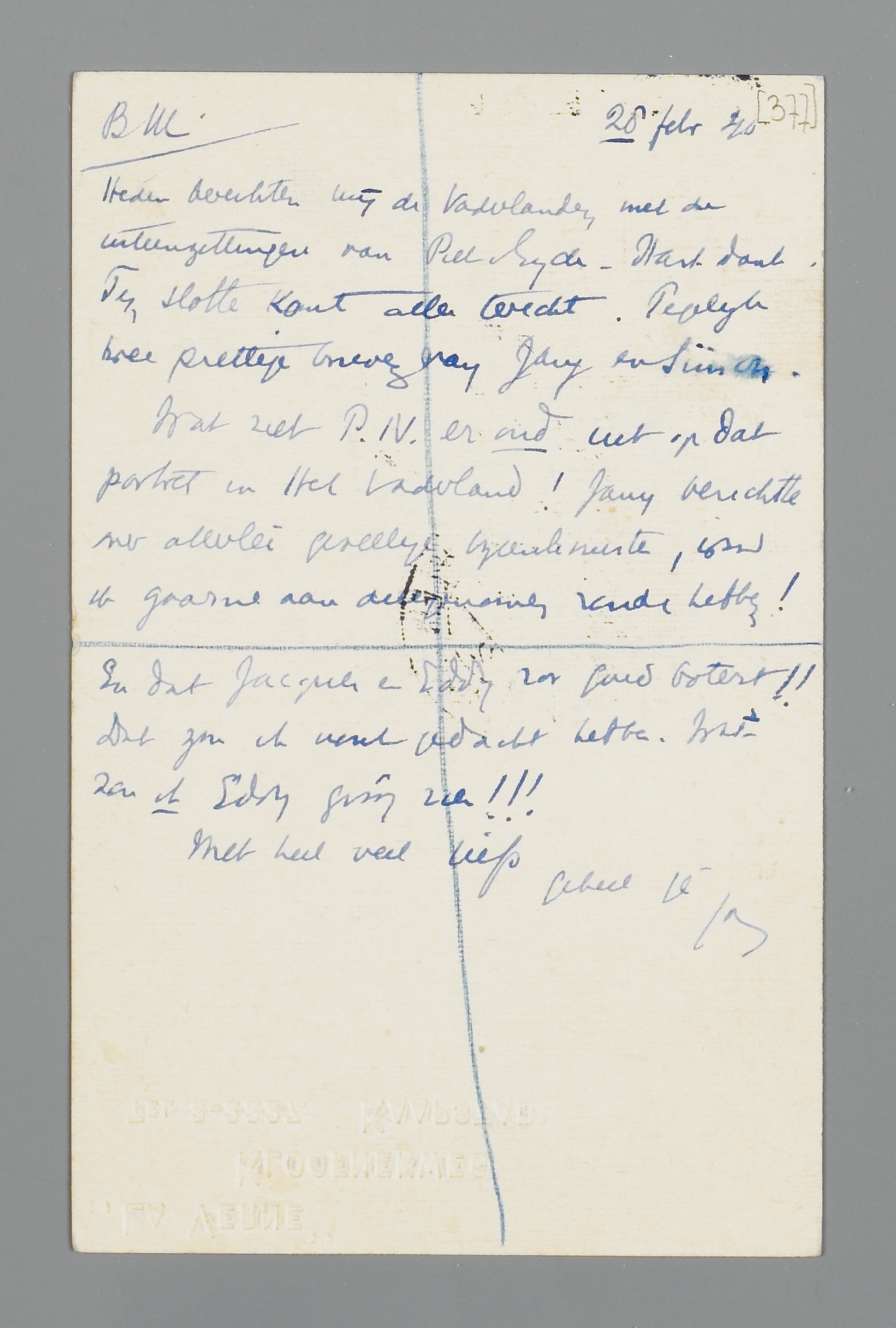 Heden bereikten mij de Vaderlanden met de uiteenzettingen van Piet Eyck. Hart. dank. Ten slotte komt alles terecht. Tegelijk twee prettige brieven van Jany en Simon.