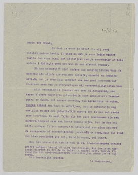 Ik kan natuurlijk niet anders dan achting hebben voor je meening als zijnde die van een eerlijk, oprecht en begaafd artist. Wat je over Kaas schreef was zoo goed begrepen dat voortaan geen van je overwegingen mij onverschillig laten kan.