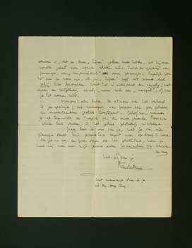 Graag hoor ik eens van je, wat je van mijn zienswijze denkt. Mijn gezondheid begint weer op dreef te komen. Ik zit nu nog een paar dagen op het platteland, maar je kunt mij weer aan mijn gewone adres Kraaienlaan 36 Den Haag bereiken.