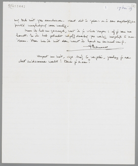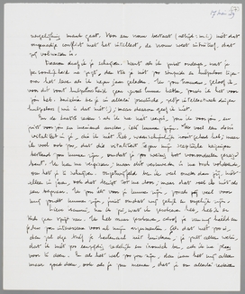 Lieve Hannie, nu ik zie, wat ik geschreven heb, heb ik er toch geen spijt van. Ik heb maar geschreven, alsof je van mij hield en je dus zou interesseeren voor al mijn argumenten. Als dat niet zoo is, dan zal deze brief je heelemaal niet hinderen; je zult alleen weten, dat ik niet zoo eenzijdig redelijk en ironisch ben, als ik me pleeg voor te doen. En als het wel zoo zou zijn, dan kan het mij alleen maar goed doen, ook als je zou meenen, dat je om allerlei redenen mij toch niet zou aandurven. Want dit is zeker: er is een ongelooflijke portie waaghalzerij voor noodig.