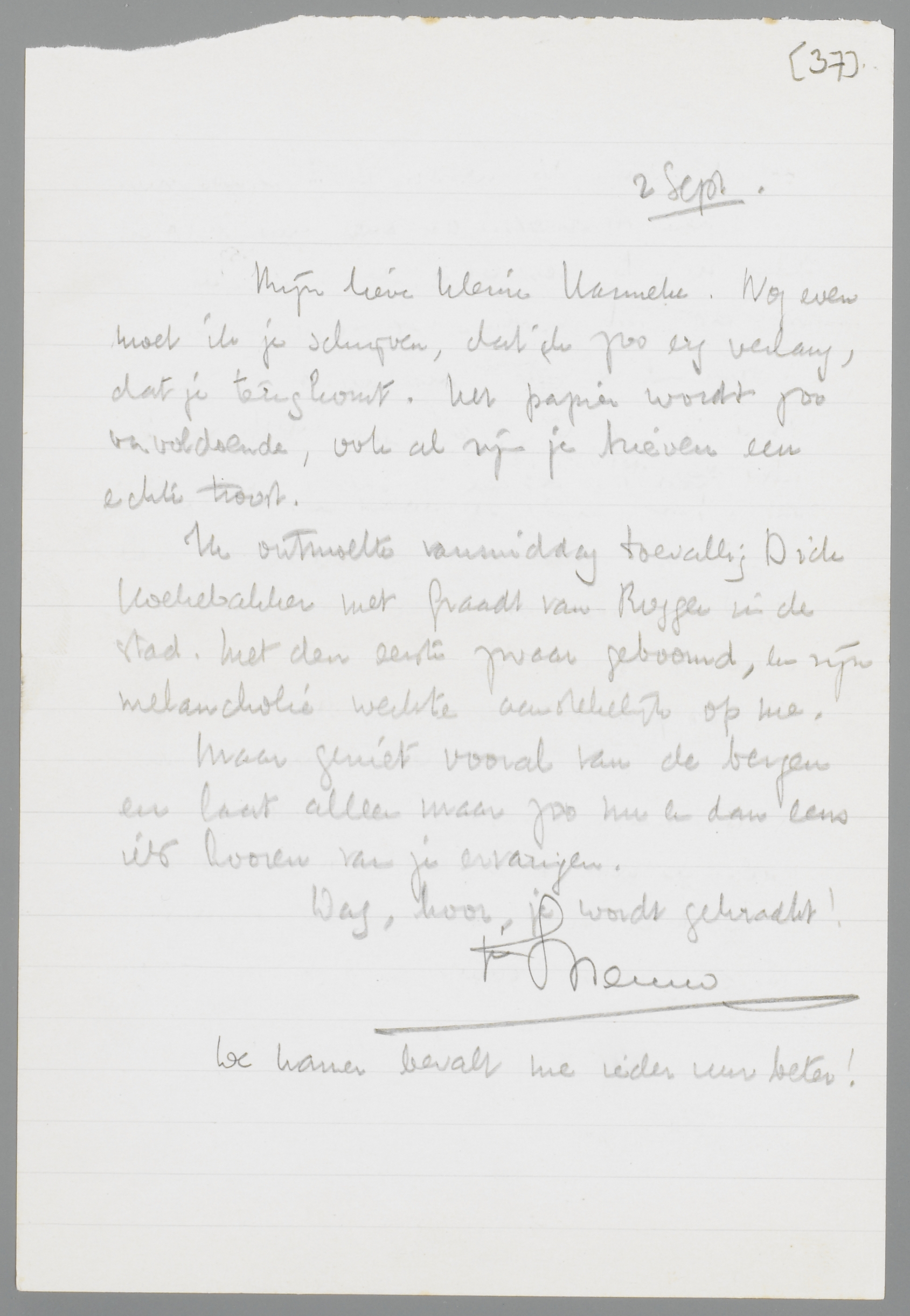 Nog even moet ik je schrijven, dat ik zoo erg verlang, dat je terugkomt. Het papier wordt zoo onvoldoende, ook al zijn je brieven een echte troost.