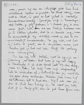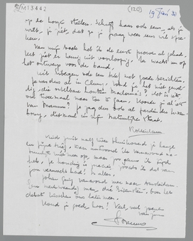 Vind juist half twee thuiskomend je lange en fijne brief. Daar antwoord ik vanavond natuurlijk niet meer op, maar zoo gauw ik tijd heb. Je houding is precies, zooals ik dat van jou verwacht had! In alles.