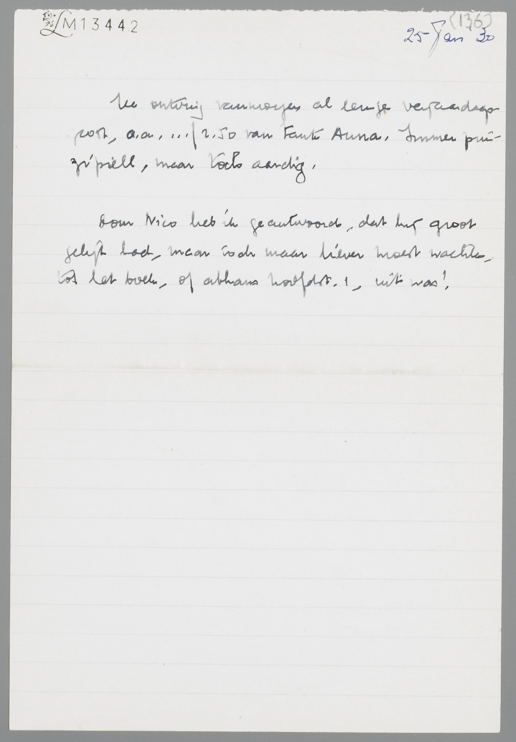 Oom Nico heb ik geantwoord, dat hij groot gelijk had, maar toch maar liever moest wachten tot het boek, of althans hoofstuk 1 uit was.