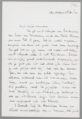 Wim had het zoo druk, dat hij gisteren niet met ons kon eten; ik zocht hem 's avonds nog op. Je kap is prachtig geslaagd; hij was er nog steeds dankbaar over gestemd.