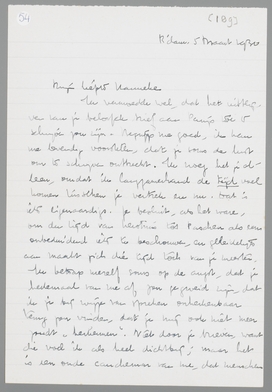 Ik heb zoo langzamerhand veel behoefte aan een beetje vacantie. Maandag was ik zoo beroerd, dat ik een dag in mijn bed bleef, met koorts; ik denk, dat ik me wat veel gepermitteerd heb vorige week; Enschedé, school, Amsterdam, Eibergen, Rotterdam, ik was regulier bek af. Veertig karaats ben ik nog niet heelemaal, maar het loopt wel weer. Alleen heb ik het vervelende toekomstvisioen, waarschijnlijk 1 April a.s. al te moeten verhuizen. Jammer dat ze daarmee niet een half jaar kunnen wachten, dat zou veel onnoodig gesjouw voorkomen.